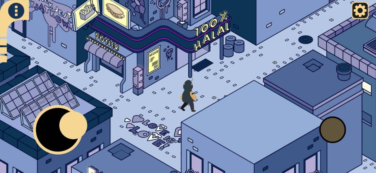 Die Steuerung ist recht simpel gehalten. Über ein visuelles Werkzeug wird die Spielfigur durch die Stadt gelenkt. Mit einer Interaktionstaste können Gespräche gestartet oder Objekte ausgewählt werden. In Dialogen können verschiedenen Antwortmöglichkeiten direkt per Fingertipp gewählt werden. Die Spielenden bestimmen außerdem selbst das Lesetempo, indem sie durch Antippen entscheiden, wann es weitergeht. Eine Schwachstelle ist, dass der Spielstand nicht immer automatisch gespeichert wird. Somit ist es evtl. ratsam, Das Ilios Experiment in einem durchzuspielen.